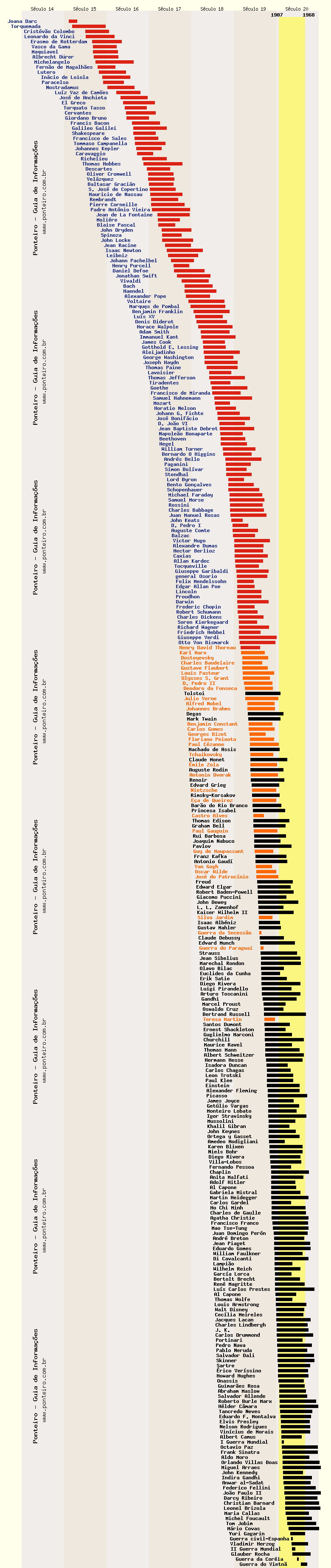 As barras e texto em preto representam as personalidades contemporâneas, ou seja,