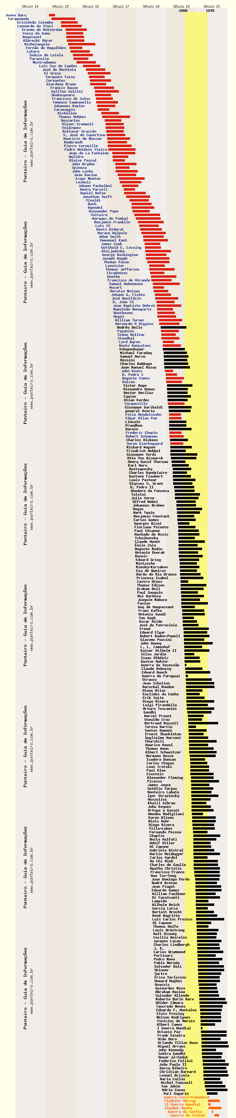 As barras e texto em preto representam as personalidades contemporâneas, ou seja,